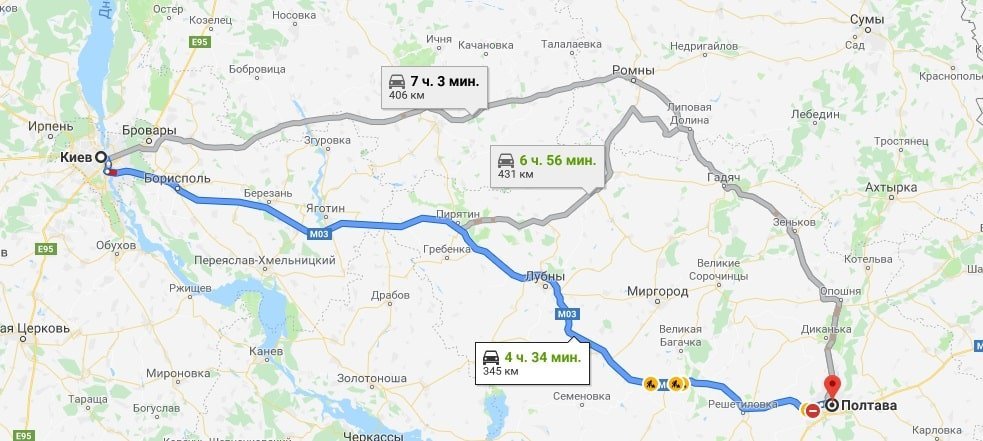 - Автомобільний маршрут: Найшвидший і найзручніший шлях пролягає трасою M03. Це головна магістраль, що з’єднує Київ та Полтаву, й на ній створено всі умови для комфортної подорожі.