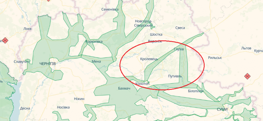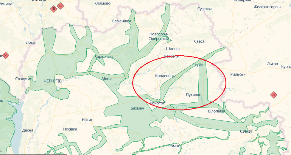 Нижче ви можете знайти карту, яка покаже відстань від Кролевця до державного кордону з Росією: